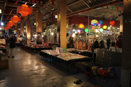 しばらく歩くと、マークルックをやっている男たちを発見。 早速、撮影させてもらう。 なぜだか、ゲーム興じる男たちは、カメラを拒否しない。 ふつうに撮影しても良いという。 しかし、ゲームに関して、かつてのような熱気は消え失せていた。 ナイト・バザー往復で見たのは、この男たちとダームをやっている男たちの2組だけだった。 ナイト・バザーは雑貨や衣類、土産物屋が多い。 食べ物を売る屋台は少ない。 色とりどりの色彩に溢れ、見ているだけでも楽しい。 初日の晩なので、買い物は急がない。 11時過ぎに帰路に向かう。 途中のセブン・イレブンで、Sang-Somのポケット瓶を買う。 150バーツだったので、食堂では50バーツの持ち込み料兼チップを取られたわけだ。 ターペー門のあたりは、昼間と変わらない人通りで、観光地の中心地らしい賑わいである。 すでに11時半を回っている。 日本時間では1時半である。 初老人たちには、この時間が限界である。 おとなしくホテルへと引き上げることにする。 |