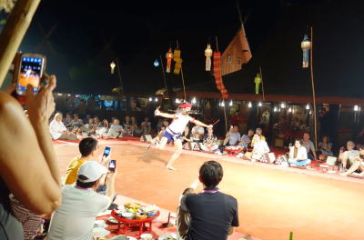 オールド・チェンマイ・カルチャーセンターからの迎えのマイクロバスに乗る。 15分くらい走っただろうか。 大きな施設らしき前庭に車が止まる。 ここは立派な観光施設で、毎晩ショーが行われているようだ。 我々はタイの料理を食べに来たのだけれど、ショーと一体になった観光客向けの施設だった。