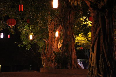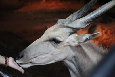 その先には何かがいるのだが、何だか判らないことも多い。 やがて何か動いた気配がすると、大きな犬くらいの動物がいた。右に左にと次々にライトが照らされる。 徐々に慣れてくると、動物が直ぐに判るようになる。 途中でニンジンなどの餌を売っており、シマウマやキリンはバス近くまで来て、その餌をねだる。 大きな顔をバスの中まで入れてこられると、皆ビックリして驚き声を上げて、ズズッと退いてしまう。 草食動物はおとなしいと判っていても、間近で見る動物たちの迫力に負けてしまう。 キリンの顔など50センチ以上の長さがあり、ど迫力に脅えながら餌のニンジンをさしだす。 バスのあちこちで歓声が上がる。 夜のサファリは動物たちが、自由に行動している時間である。 ライトを消して走っているあいだは真っ暗だから、1人だったらと思うと恐ろしい。 さすがにライオンや虎といった肉食獣は、堀の先の遠くのほうにいる。 熊は何頭もいるが、やはり遙か彼方である。 カバが近くで口を開けた。 その口に向かって、バスの中から餌を投げる。 最初の30分くらいのコースが終わって、次には別のコースを走るバスに乗る。 南ゾーンと北ゾーンに分かれているらしい。 どちらが南で、どちらが北だかわからないが、とにかく乗ってしまう。 今度のガイドさんは女性で、やっぱり英語が聞きにくい。 でも実物が目の前に現れるので、充分に楽しめた。 ここでは中国人の観光客が多かった。 すでに誰もいなくなった中庭をとおって、入り口のゲートのほうへと向かう。 途中で、セグウェイのデモをやっていた。 人気の少なくなったサファリをあとに駐車場へと向かう。 我々が先着で、約束の場所には誰もいなかった。 徐々に集まりだしてきた。 運転手さんが全員集合ですね、と念を押して発車したら、若い男性がいないという声が上がった。 ゆっくりと動く車窓を見ると、大きな男性がドアに手をかけているではないか。 危うく置いていくところだった。 こんな所に置いて行かれたら、と思っただけでも鳥肌が立ちそうだった。 帰りは順調に走ってきた。 我々は乗った場所ではなく、シリランナー・ホテルで降ろしてもらう。 すでに11時過ぎである。近くのレストランで、遅い夕食をする。 近くのテーブルでは、若い白人の女の子たちが、お喋りに興じている。 彼女たちにとっては、まだ宵の口なのだろう。 我々はホテルに戻って、ベッドに潜り込むことにした。 |
