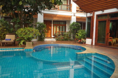 冷たい。 でも入るんだと、固い決意でプールの中へと入っていく。 階段状になって、一番下に立った時には、すでに胸くらいの深さである。 冷たさにグッと耐えて、水に身体を投げ入れる。 そっと手をかいて進む。 向こう岸に着いたら、こちらへと帰ってくる。 バスタオルで水分をぬぐう。 プールサイドにあるデッキに横になる。 木が目の前に見える。 高く伸びた枝が、プールに被さっている。 火照った身体も落ち着いてきた。 暑さから逃れることができた。 通りかかったホテルの女性にコーヒーを頼む。 ゆったりと横になって、コーヒーを楽しむのは極楽極楽である。 暫くすると、中年の白人男性がプールにやってきた。 彼はパンツではなくショートパンツである。 大きく出っ張ったお腹の真ん中には、手術跡が縦に走っている。 ゆっくりと水に入る。 しかし、水を冷たいとは感じていないようだ。 中央に首だけ出している。 ホテルの女性が、水面の落ち葉を拾い始めた。 そして、客だろう彼に、水底の枝を拾うように頼んでいる。 そのやり取りが何とも良い感じである。 1時間くらいたっただろうか、色白の中国人らしき女性が、小さな子供を連れてやってきた。 2人ともきちんとした水着姿である。 プールサイドに座って、水に足を入れている。 冷たいのだろう。 なかなか中へは入らない。 誰もボクのパンツには注目していない。 ゆっくりと時間が流れていった。 |
