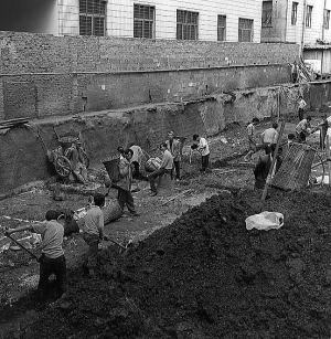 食事もすんだので、また歩き出す。 前衛路というやや広い通りへ出た。 ここは対面交通である。 前衛路を北上する。 道端に赤白のビニール・シートで囲われたところがある。 工事現場だった。 なかををのぞく。 土が掘られた底では人が働いていた。 彼等と笑顔をかわす。 今日は昆明北駅まで行くつもりなのだ。 南に昆明駅があり、北に昆明北駅がある。 両駅の間は5キロ近く離れており、広い北京路が結んでいる。 ほとんどの長距離列車は昆明駅から発車するので、昆明駅は大きく昆明北駅は小さい。 しかし、昆明北駅付近も探検したいではないか。 しかも出札業務がオンライ化されたので、どこでも切符が買えるというのだ。 前衛路から広い青年路へと入り、なおも北上を続ける。 青年路の電線はすべて地下に埋設され、広い歩道が両側にゆったりとある。 何事も桁違いな中国では、 街づくりも雄大で道は広い。 あたりには20階建てくらいの高層建築が建ち並び、そのスケール観に圧倒される。 建物のデザインがいささか中国風である。 わが国の建築と比べると、細部のデザインが少し野暮ったく見えるが、全体の構成力は侮りがたいものを感じる。 コ ンクリートが打ち上がった建築の途中で、工事が止まっているものがあったりして驚く。 柱と床だけのコンクリートの黒い塊が、そびえ立つ風景というのも異様 なものだ。 人のいないコンクリート構築物のなかに、洗濯物が干してある。 警備員でも住んでいるに違いない。 1時間ほど歩いただろうか。 動物園の前にでた。 このあたりでお茶にしたい。 しかし、喫茶店というものがない。 中国にはお茶だけを飲む、そうした習慣がな いのだろうか。 お茶は食事と一緒に飲むものであり、お茶だけで料金が取れないのだろう。 だから喫茶店がないに違いない。 わが国だって、日本茶だけを飲ませる喫茶店などない。 そういえばヨーロッパでも、今日のようなコーヒーハウスができたのは近代になってからだという。 喫茶店というのも近代の産物なのだ。 イギリスのコーヒーハウスが、反体制運動の温床になったという本を読んだばかりだ。 軽い食べ物も頼むことにする。 羊羹のように型に流したビーフンを、包丁でスティック状に切り、野菜と味噌で味付けたものを頼む。 残念ながらあまり美味くはない。 3分の1くらい食べただけで残してしまった。 メンの本場は中国だとは知っていたが、ビーフンをこんなにも食べるとは知らなかった。 昆明では、明らかにラーメンよりビーフンのほうが多い。 その食べ方 にも様々あるようだ。 しかし、僕の他には客がいなかった店で、食べたこのビーフンがいけなかったようだ。 あとでひどく苦しむことになるのだが、この時は何事 もなく昆明北駅へ向かって歩き始めた。 大きな橋を渡る。 この橋は川をまたぐだけではなく、下には道も走っている。 橋のたもとに「公厠」という文字を見つけた。 近寄ってみる。 公衆便所である。 わが国では中国のトイレは汚いので有名だが、まずは入ってみる。 男子用が奥で、女子用が手前である。 男子用には小便器が6台、ブースが5つある。 ブースはきちんと囲まれており、トルコ式のしゃがむ便器が据え付けられている。 しかも水洗である。 意外なことにきわめて清潔だった。 しかし、ブースには扉はない。 身体の半分くらいが隠れるだけである。 隣同士は見えないが、通 路からは中が見える。 入り口で2元取られた。 トイレから出てまた歩く。 歩道でカードをしている。 このあたりは開発が進んでいるらしく、建物はみな新しくなって高く大きくなっている。 そして、広い道路は車が走るだけ、人間の生活が見えるのは路地である。 開発から取り残された道を見つけた。 5メートルほどの道幅だが、瓦葺きの古い建物が、今にも崩れそうな街並みをつくっている。 くたびれた服装の男たちが 大勢たむろしている。 昼間から酒を飲んでいるようでもある。 道の両側には露店もならんでいる。 そこでは僕にはがらくたとしか見えないものを並べている。 たった100メートルほどの道だが、ここは北京路や青年路とはまったく違う。 ごみごみした空気、曲がった家並み、汚れた服の人々、何十年も前に戻ったようだ。 よく見ると、昆明には開発から取り残された場所が、まだところどころにある。